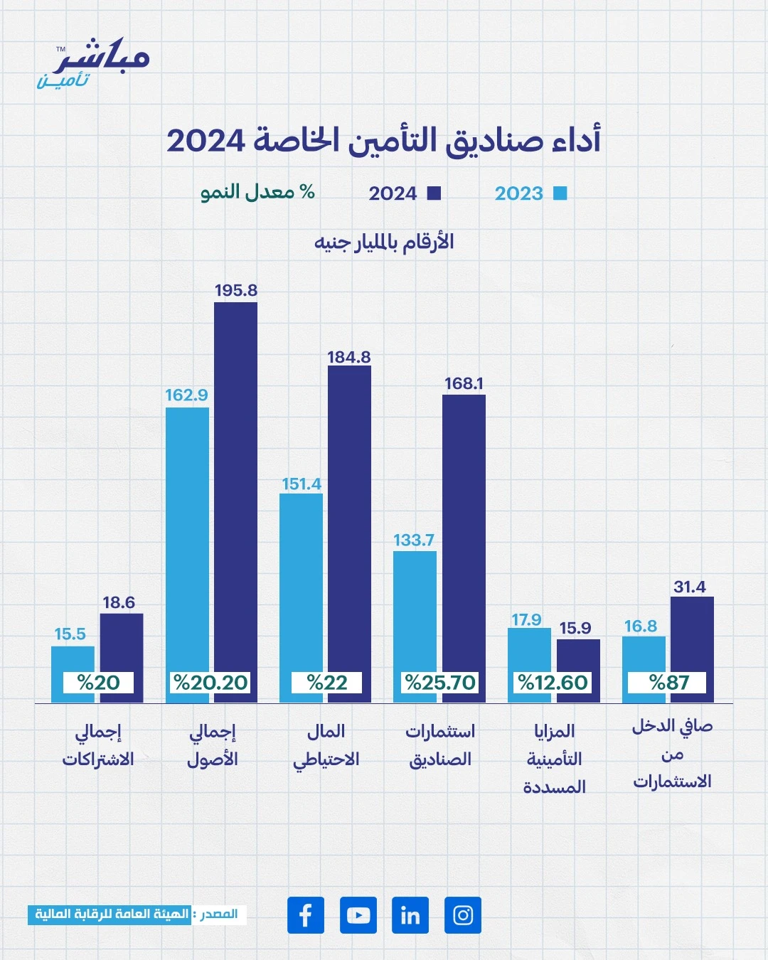 للرقابة المالية السنوي حول أأداء صناديق التأمين الخاصة لعام 2024،عن ارتفاع عدد
